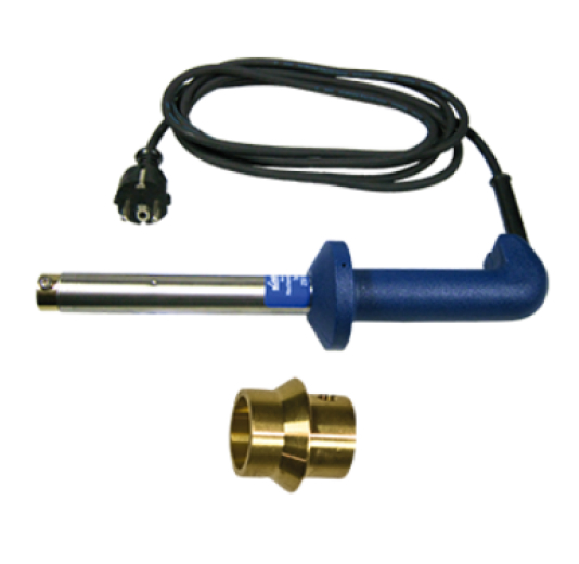 Рекомендується використовувати для видалення рогових зародків. Висока температура насадки (золотавого кольору на фото) дає змогу легко провести  декорнізацію рогового зародка. Завдяки низькій вазі є зручним у використанні. Обладнаний ергономічною ручкою. Дротового типу підставка фіксується на металевий нагрівальний елемент. Вона ж і залишається на термокаутері під час роботи. Час нагрівання становить до 10 хв, максимальна температура нагрівання до +700°C. Перевіряти робочу готовність потрібно лише на дерев’яній поверхні, на якій випалююче сопло залишить випалений слід круглої форми (по контуру форми випалюючого сопла).